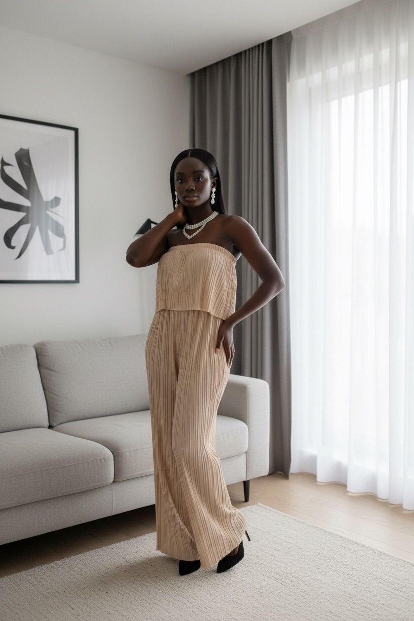 Elevate your wardrobe with our Beige Strapless Women’s Jumpsuit from JJays Clothing.