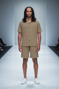 Men Ribbed Short Set-Button -up Shirt & Short