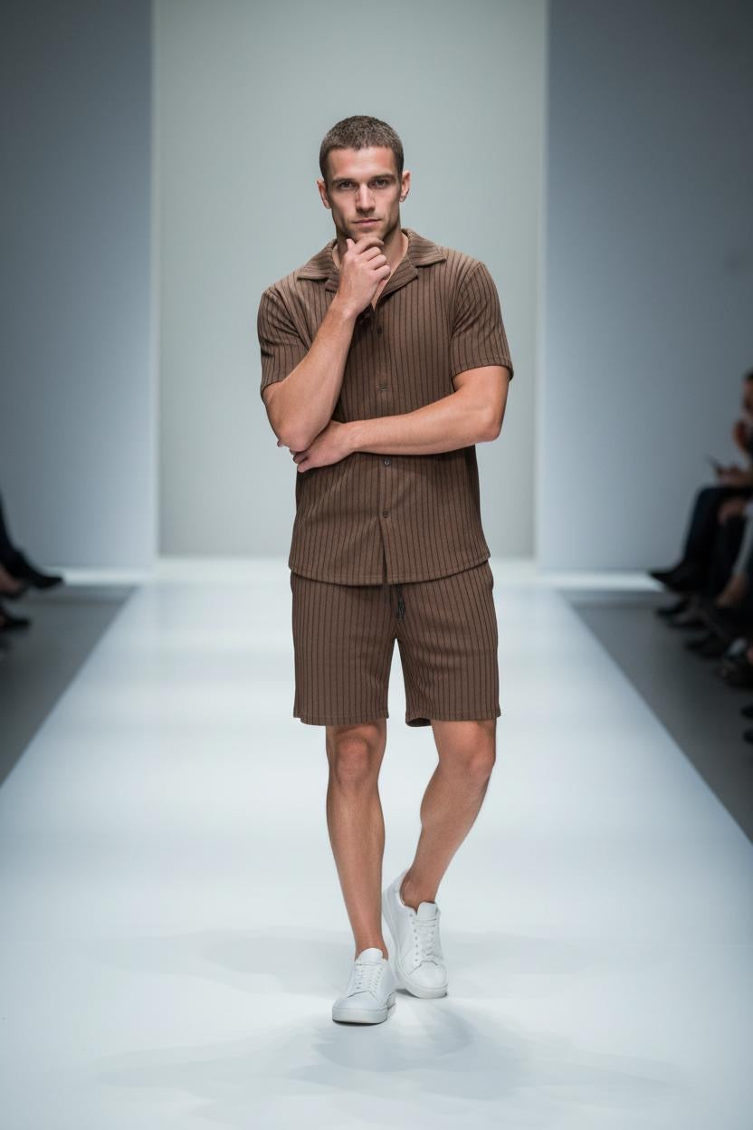 Elevate your warm-weather wardrobe with this effortlessly refined ribbed summer set. Designed for clean lines and all-day comfort, this matching short-sleeve shirt and tailored shorts combo delivers a sharp, contemporary look with minimal effort.