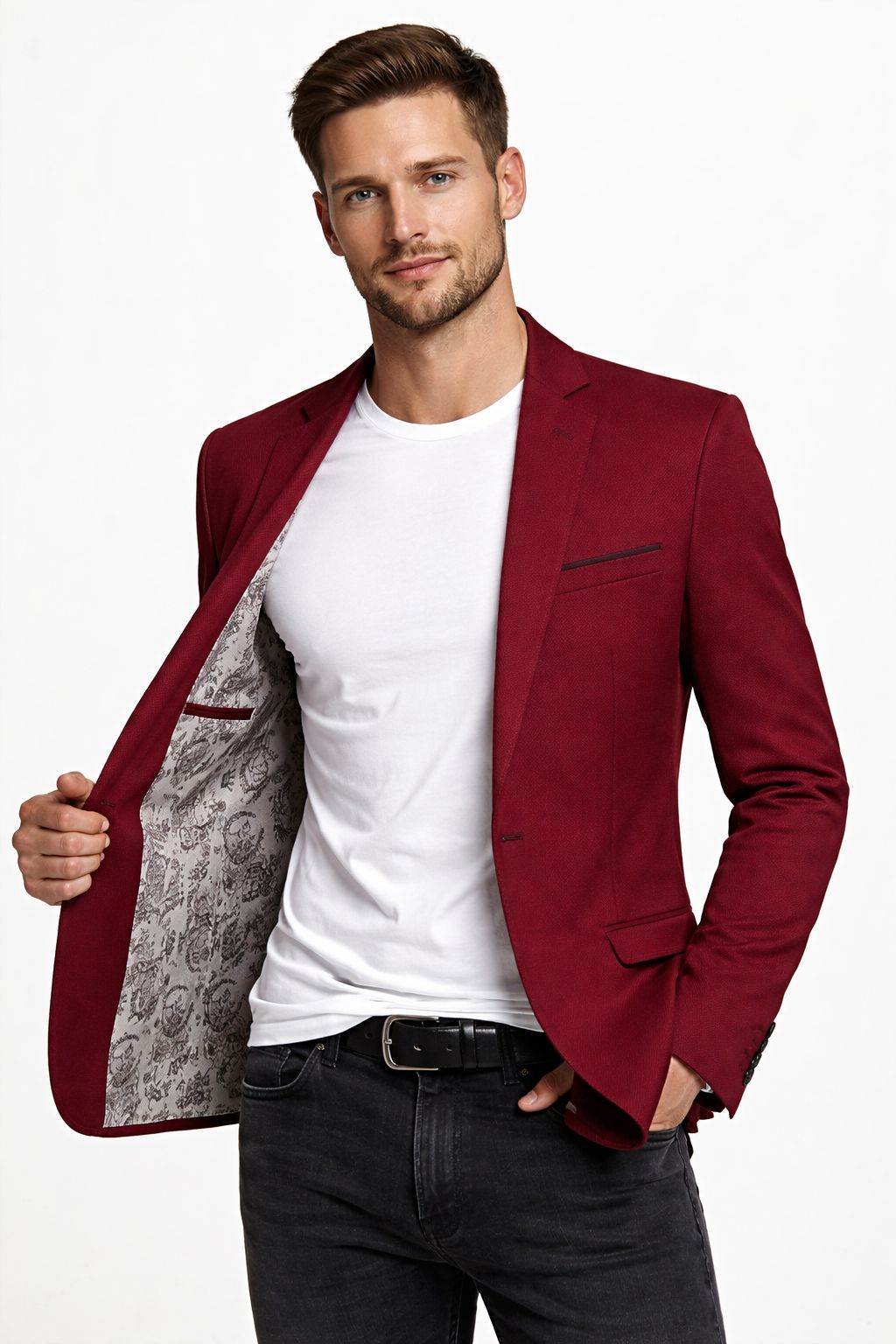 Men’s Burgundy Slim-Fit Blazer – Modern Tailored Jacket
