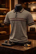 Men’s brown designer polo shirt with geometric pattern”