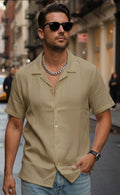 Crafted from a lightweight, breathable fabric with a soft textured finish, it keeps you cool while maintaining a polished look. The relaxed fit drapes cleanly on the body, making it perfect for casual outings, summer events, or elevated streetwear looks.