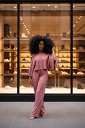 Rose Pink Two-Piece Women’s Off Shoulder Top & Wide Leg Pants