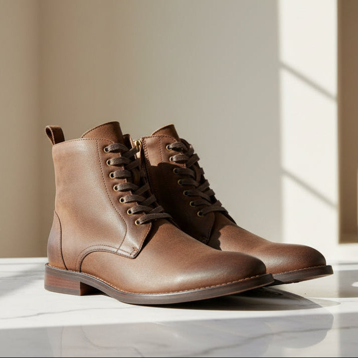The lace-up front combined with a side zipper offers both secure fitting and easy on-and-off convenience. Built with a durable outsole and comfortable inner lining, these boots are perfect for daily wear, office use, casual outings, or semi-formal occasions.